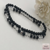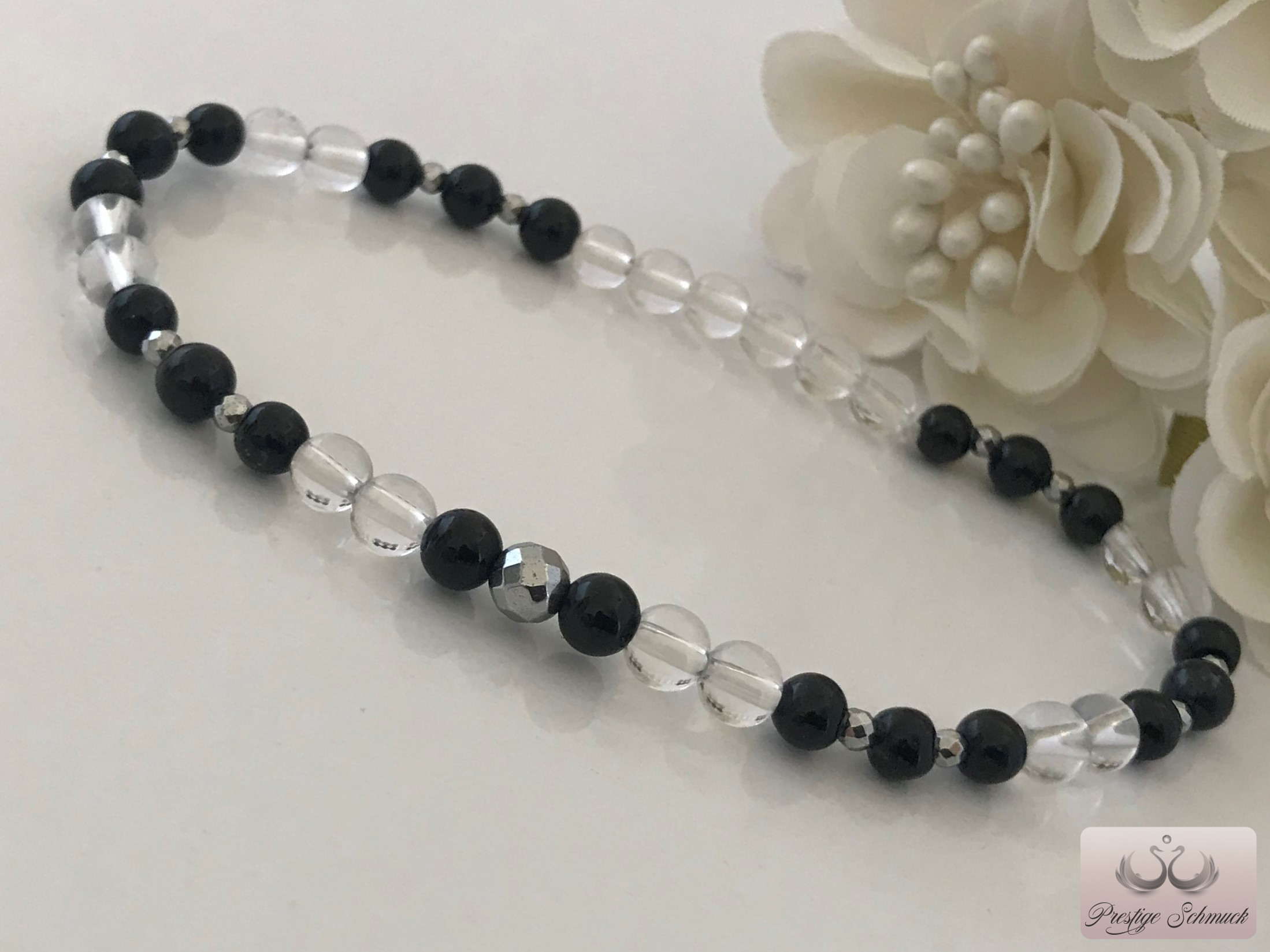 Onyx- und Bergkristall Armband mit Gummizug und Hämatitelementen