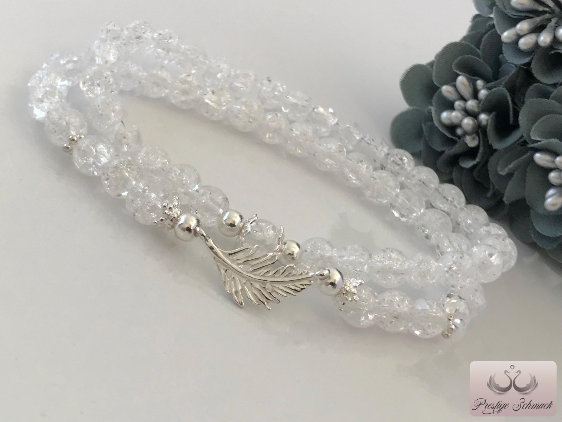 2 Bergkristall Armbänder mit Gummizug und 925 Silber Elementen.