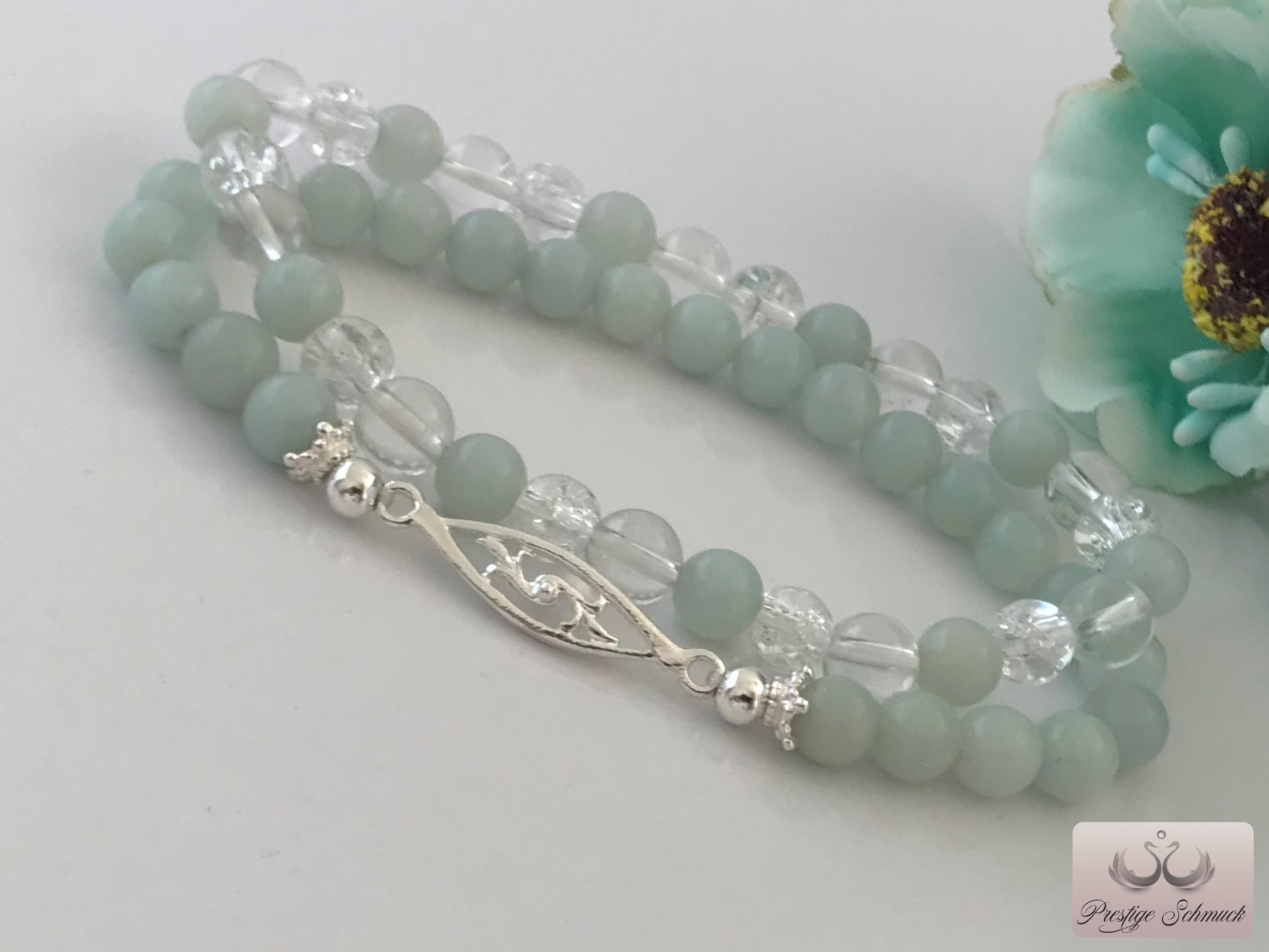2 Amazonit Armbänder mit Gummizug und 925 Silber Elementen.