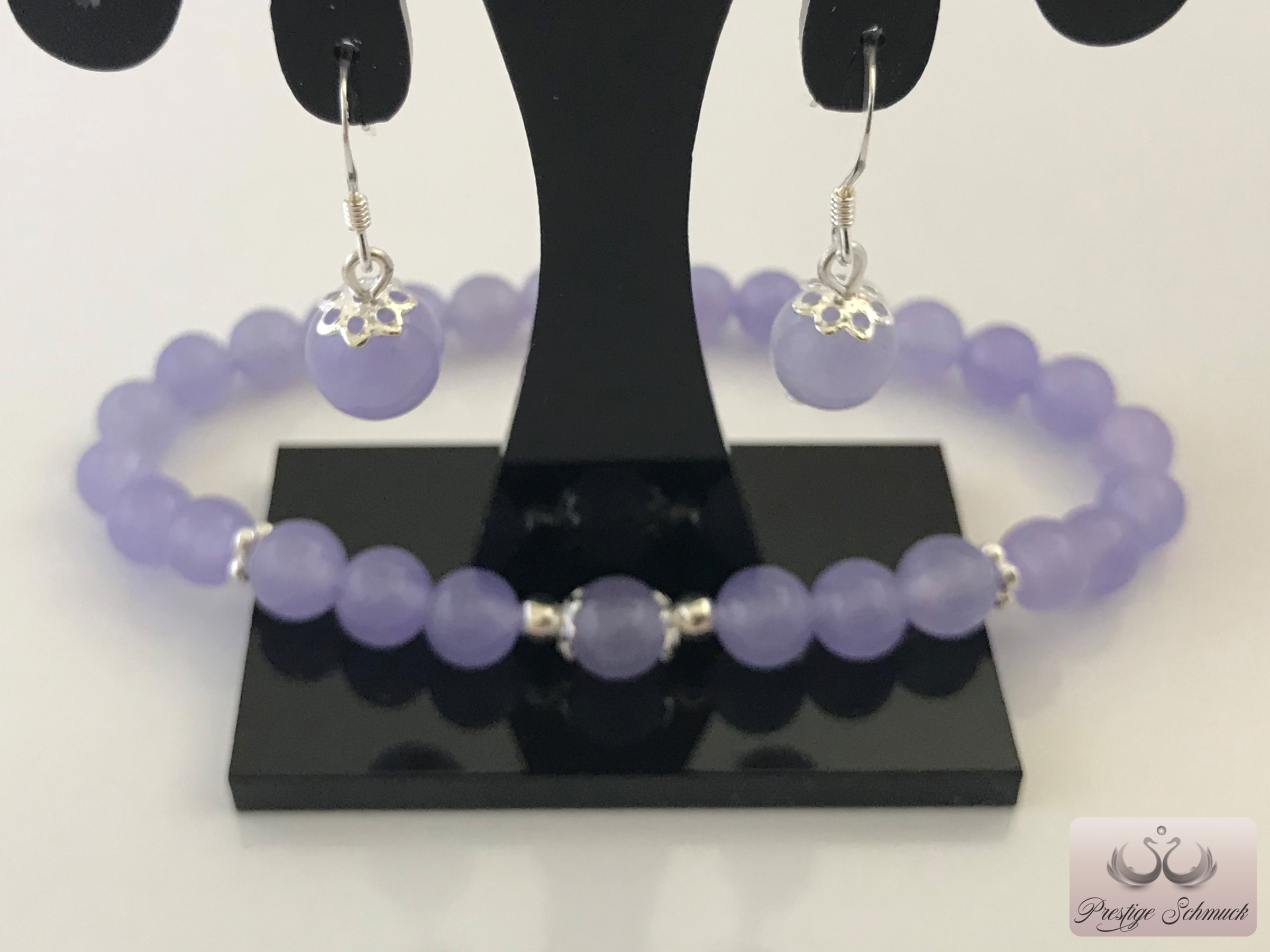 Jade Armband mit Gummizug und Jade Ohrringe mit 925 Silber