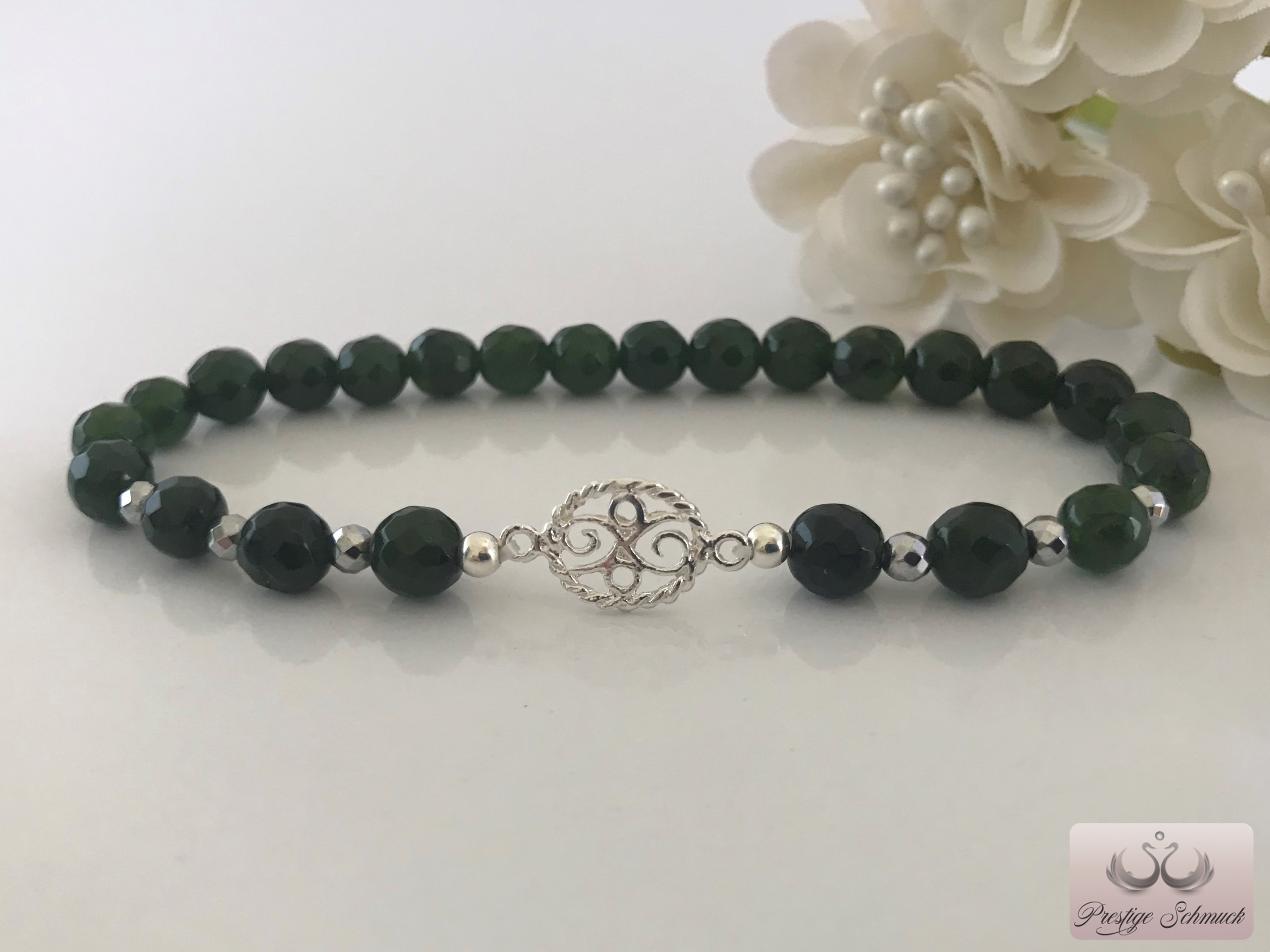 Smaragd Armband mit Gummizug und 925 Silber Verbinder